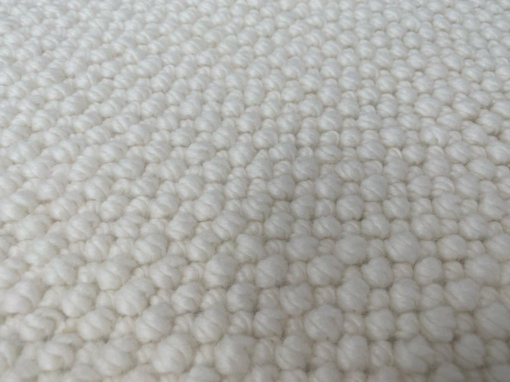 Vlněný koberec není chemicky impregnovaný. Vlna je před výrobou pouze vypraná, vyčištěná a technologicky připravená ke zpracování. Díky své přirozené struktuře má vlna sama o sobě výborné vlastnosti – odpuzuje nečistoty, reguluje vlhkost a je příjemná na dotek.